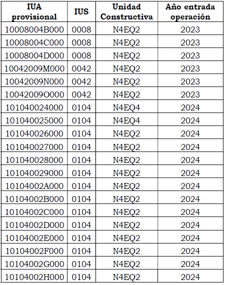 - En el formato “formato12_redes_N1”, no se incluyen los campos “IUA ajustado”, “IUA Reemplazado” y “año entrada operación”.