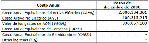 Aplicada la metodología contenida en la Resolución CREG 011 de 2009, considerando la modificación del porcentaje de uso de los activos de la Subestación Paipa 230 kV, objeto de esta actuación administrativa, se calcularon para los activos representados por la Empresa de Energía de Boyacá S. A. E.S.P., las siguientes variables: