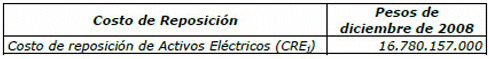 Artículo 4o. Costo de Reposición de los Activos Eléctricos. El costo de reposición de los activos eléctricos (CREj) remunerados mediante cargos por uso a la Empresa de Energía de Boyacá S. A. E.S.P., calculado con la base de activos al que hace referencia el artículo 3o de la presente resolución y de acuerdo con lo señalado en la Resolución CREG 011 de 2009, es: