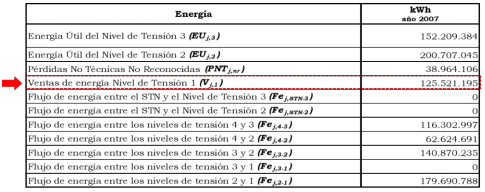 Revisados los argumentos presentados por la empresa, se encuentra que en efecto se cometió un error involuntario que debe ser corregido, dado que el valor de las ventas en el nivel de tensión 1 es 125.521.195 kWh en el año 2007, el cual será incluido en los cálculos