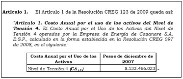 ) aprobado para ENERCA S.A. E.S.P., mediante Resolución CREG 084 de 2012, correspondiente a 8.133.466.023 COP dic 2007 para el cálculo del costo anual de la inversión del nivel de tensión 4 como se indica en la Figura 1.