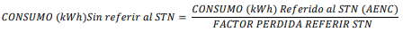 | MES | CÓDIGO SIC | FACTOR PERDIDA REFERIR STN (tfroc XM) | CONSUMO (kWh) Referido al STN (AENC) | CONSUMO (kWh) Sin referir al STN | FACTOR PERDIDA REFERIR STN (UTILIZADO POR LA CREG) | CONSUMO (kWh) Sin referir al STN (UTILIZADO POR LA CREG) | DIFERENCIA CONSUMO (kWh) |