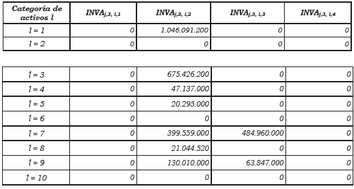 Artículo 3o. Inversión aprobada en el plan de inversiones. El valor de las inversiones aprobadas en el plan de inversiones, INVAj,n,l,t, para cada nivel de tensión, siguiente:
