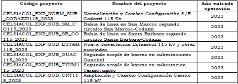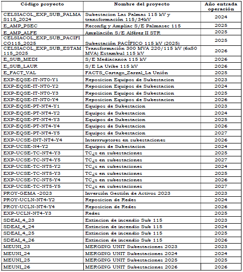 Sobre estos proyectos, es importante destacar el de código CELSIACOL_EXP_SUB_ ESTAM 115_2025, ya que corresponde a la instalación de transformadores de potencia en el Sistema de Transmisión Nacional, STN, y el OR no suministró concepto UPME, independientemente del tipo de inversión.