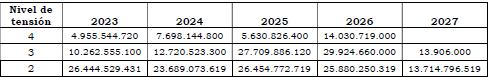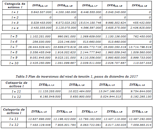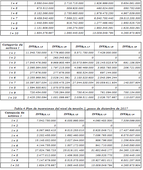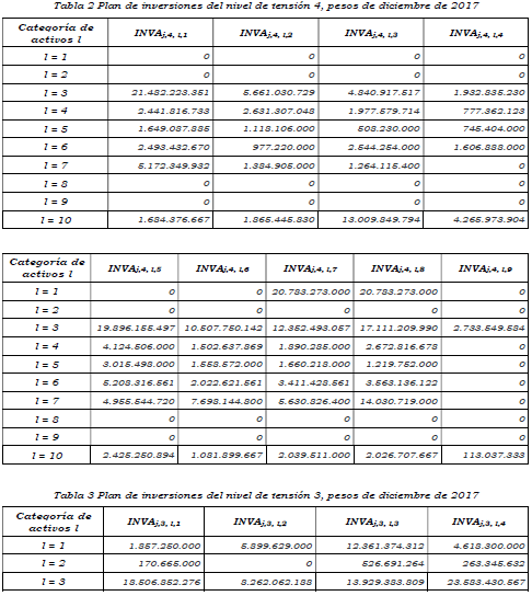 Artículo 3o. Inversión aprobada en el plan de inversiones. El valor de las inversiones aprobadas en el plan de inversiones, INVAj,n,l,t, para cada nivel de tensión, es el siguiente: