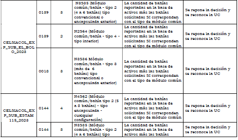 Para el análisis de esta observación, se toma el documento “Prueba N.8 Documento Soportes Módulos Comunes” suministrado como anexo del radicado CREG E2024008507. Se debe resaltar que, para la verificación de la cantidad de bahías, se toma la base de activos anterior al quinto año del plan de inversión.