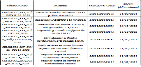 Entre estos proyectos se destacan los siguientes, frente a los cuales CELSIA COLOMBIA S. A. E.S.P. suministra el concepto entregado por la UPME: