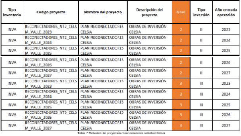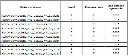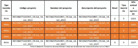 Adicional a la eliminación de 5 de los proyectos solicitados en el plan de inversión, se puede notar que la Comisión realizó modificación de los años de entrada de operación en los Proyectos reportados bajo los conceptos de Reconectadores Celsia Valle para los años 2024, 2025 y 2026, cambiándolos sin ninguna justificación, como se detalla en la siguiente tabla: