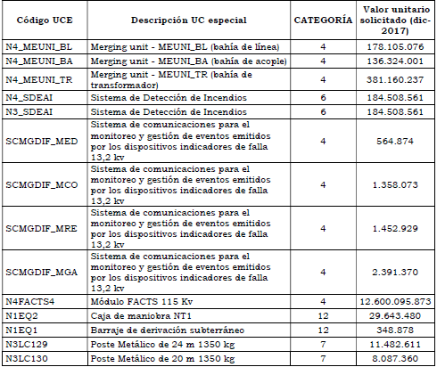 Por otro lado, al analizar la composición de estas UC especiales se identifica que por sus funciones y comportamiento corresponden a componentes de UC de control de subestaciones, por lo que no se presentan características técnicas distintas a las UC establecidas en el Capítulo 14 del Anexo General de la Resolución CREG 015 de 2018.