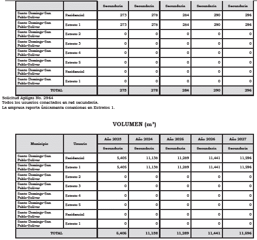 | Componente de Inversión COLGAS S. A. E.S.P. | $/m³ | 5,531.42 |