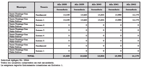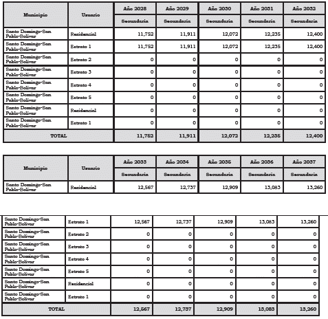 En la solicitud presentada se allegaron las proyecciones de demanda, las proyecciones de gastos de administración operación y mantenimiento, (AOM), y el programa de nuevas inversiones, clasificadas según el listado de unidades constructivas establecido en el Anexo número 8 de la Resolución CREG 202 de 2013, en concordancia con las resoluciones CREG 138 de 2014, 090 y 132 de 2018 y 011 de 2020. Así mismo, presentó la proyección de las inversiones y de gastos AOM, y la propuesta de cargo de comercialización, en concordancia con las disposiciones de la Metodología de Comercialización fijadas en la Resolución CREG 102 003 de 2022 del 8 de abril de 2022, conforme a lo solicitado.