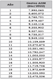 | Componente Gastos AOM | $/m³ | 2,951.69 |