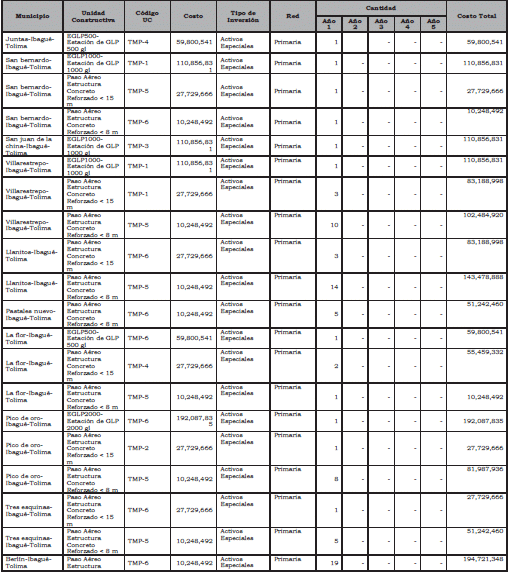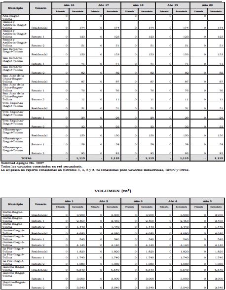 En la solicitud presentada se allegaron las proyecciones de demanda, las proyecciones de gastos de administración operación y mantenimiento (AOM), y el programa de nuevas inversiones, clasificadas según el listado de unidades constructivas establecido en el Anexo número 8 de la Resolución CREG número 202 de 2013, en concordancia con las resoluciones CREG números 138 de 2014, 090 y 132 de 2018 y 011 de 2020. Así mismo, se presentó la proyección de las inversiones y de gastos AOM y la propuesta de cargo de comercialización, en concordancia con las disposiciones de la Metodología de Comercialización fijadas en la Resolución CREG número 102 003 de 2022 del 8 de abril de 2022.