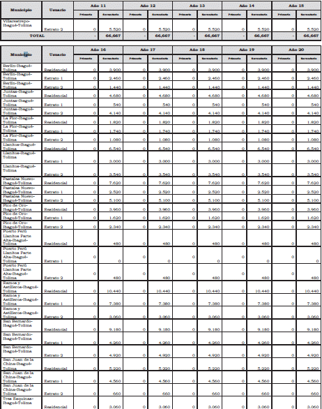 ARTÍCULO 8o. COMPONENTE FIJO DEL COSTO DE COMERCIALIZACIÓN APLICABLE AL MERCADO RELEVANTE DE COMERCIALIZACIÓN CONFORMADO POR LOS CENTROS POBLADOS DE BERLÍN, JUNTAS, LA FLOR, LLANITOS, PASTALES NUEVO, PICO DE ORO, PUERTO PERÚ LLANITOS PARTE ALTA, RAMOS Y ASTILLEROS, SAN BERNARDO, SAN JUAN DE LA CHINA, TRES ESQUINAS Y VILLARESTREPO EN EL MUNICIPIO DE IBAGUÉ, DEPARTAMENTO DEL TOLIMA. A partir de la vigencia de la presente resolución, el Componente Fijo del Costo de Comercialización aplicable para el Mercado Relevante de Comercialización para el Siguiente Período Tarifario, para recuperar los costos de inversión y los gastos de AOM para la comercialización minorista de gas por redes de tubería, se fija de la siguiente manera: