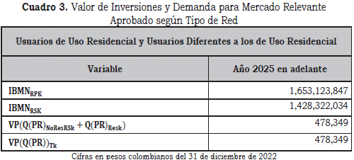 En aplicación de la Resolución CREG número 202 de 2013, en concordancia con las Resoluciones CREG número 138 de 2014, 090 y 132 de 2018 y 011 de 2020, se calcularon las siguientes variables principales para la componente que remunera la inversión base aplicable a usuarios de uso residencial y a usuarios diferentes a los de uso residencial:
