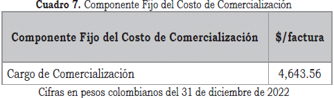 PARÁGRAFO. El cargo asociado al Componente Fijo de los Costos de Comercialización del presente artículo se actualizará de conformidad con lo establecido en el artículo 10 de la Resolución CREG NÚMERO 102 003 de 2022.