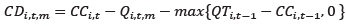 Capacidad disponible de compra del distribuidor i, para el período de compra t, calculada para el mes m, medida en kilogramos.