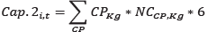 Capacidad total de envase en cilindros de propiedad del distribuidor i, en el período t, medida en kilogramos, registrado en el SUI.