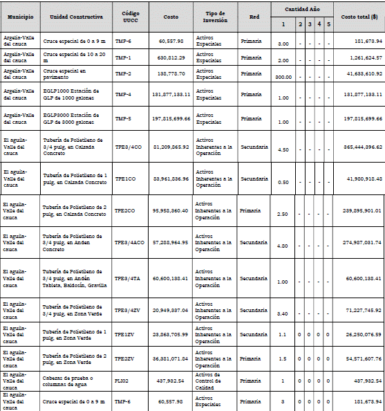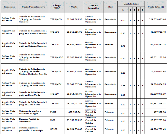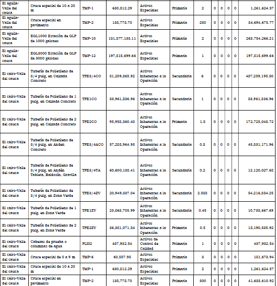 | Componente de inversión pagada con recursos de OP&S CONSTRUCCIONES S. A. E. S. P. | $/ m3 | 1,896.80 |