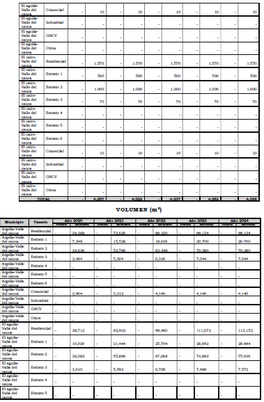 ARTÍCULO 2o. DEMANDAS DE VOLUMEN. Para el cálculo tarifario se utilizó la Demanda de Volumen para el horizonte de proyección presentada en el Anexo 2 de esta resolución.