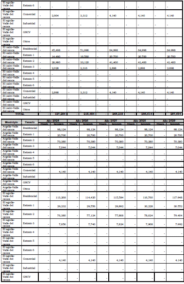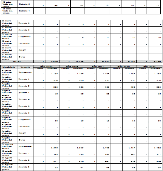 Las proyecciones de demanda tenidas en cuenta por parte de la Comisión fueron las proyecciones de demanda aprobadas por la Unidad de Planeación Minero Energética (UPME), según Radicado CREG E-2017-008462 del 13 de septiembre de 2017(1). Así mismo, las proyecciones de gastos de administración operación y mantenimiento (AOM) y el programa de nuevas inversiones, se clasificaron según el listado de unidades constructivas establecido en el Anexo número 8 de la Resolución CREG 202 de 2013 y en concordancia con las resoluciones CREG 138 de 2014, 090 y 132 de 2018 y 011 de 2020 ajustadas a fecha base.
