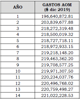 PROYECCION DE GASTOS AOM (ADMINISTRACIÓN, OPERACION Y MANTENIMIENTO).