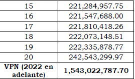 | Valor Presente AOM, con nivel de eficiencia | 1,543,022,787.70 |
