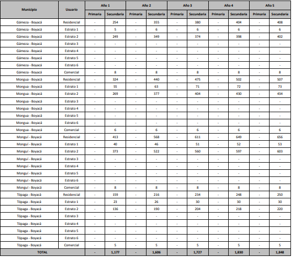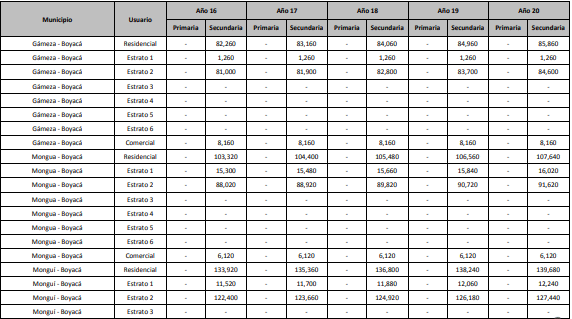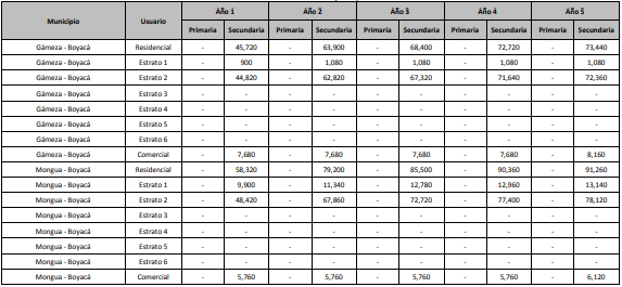 Mediante comunicación E-2022-002975 del 15 de marzo de 2022, la empresa MADIGAS INGENIEROS S.A. E.S.P. aclaró que “(…) no está solicitando cargo por conexión al mercado existente de Busbanzá y Corrales, teniendo en cuenta que las proyecciones hechas por la empresa estiman el cargo por conexión como cero (0)”.
