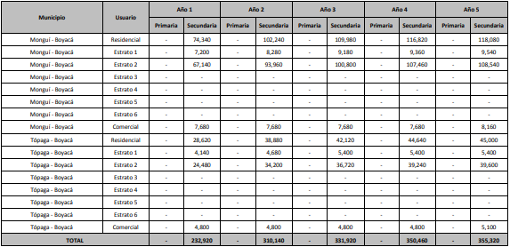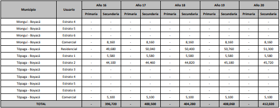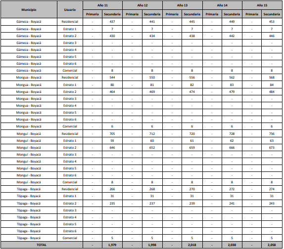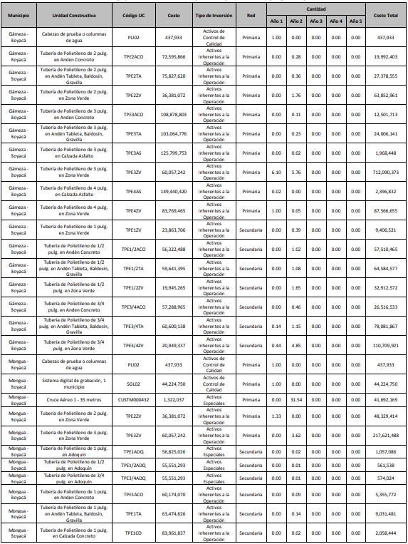 En la solicitud presentada se allegaron las proyecciones de demanda, las proyecciones de gastos de administración operación y mantenimiento, AOM, y el programa de nuevas inversiones, clasificadas según el listado de unidades constructivas establecido en el Anexo No. 8 de la Metodología.