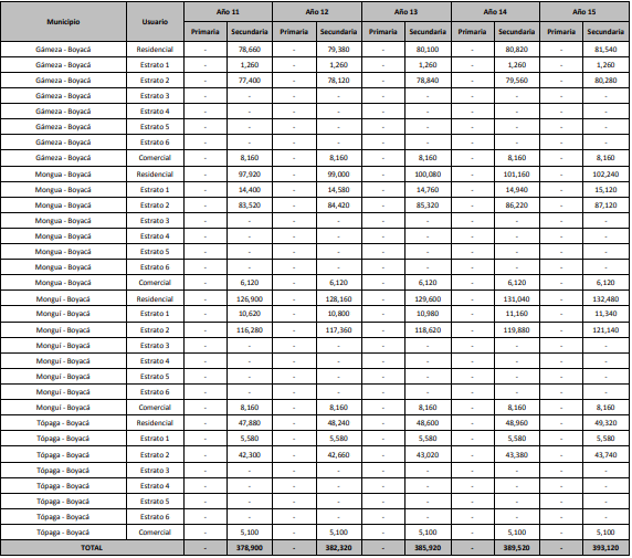 ARTÍCULO 2. DEMANDAS DE VOLUMEN. Para el cálculo tarifario se utilizó la Demanda de Volumen para el horizonte de proyección presentada en el Anexo 2 de esta Resolución.