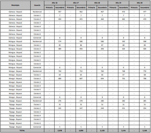 Aplicando la Metodología, se calcularon las siguientes variables principales para la componente que remunera los gastos de AOM, aplicable a usuarios de uso residencial y a usuarios diferentes a los de uso residencial: