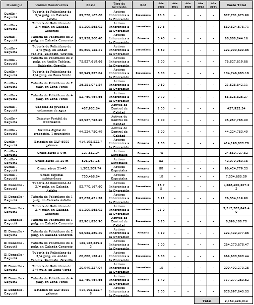 | Componente de inversión pagada con recursos privados | $/m3 | 2,644.39 |