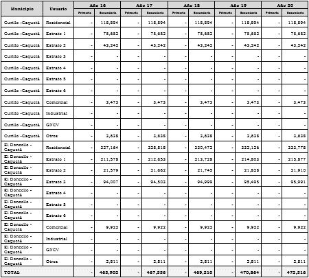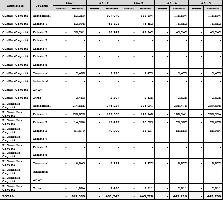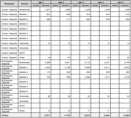 Las proyecciones de demanda tenidas en cuenta por parte de la Comisión fueron las proyecciones de demanda aprobadas por la Unidad de Planeación Minero-Energética (UPME), según radicado CREG E-2017-003388. Así mismo, las proyecciones de gastos de AOM y el programa de nuevas inversiones, clasificadas según el listado de unidades constructivas establecido en el Anexo No. 8 de la Metodología ajustadas a fecha base.
