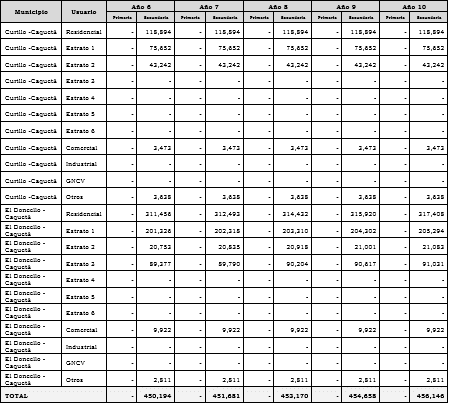 De acuerdo con lo anterior, mediante Resolución CREG 085 de 2017 se aprobó el cargo de distribución transitorio por uso del sistema de distribución de gas combustible por redes de tubería para el mercado relevante conformado por los municipios de Curillo y El Doncello, departamento del Caquetá, según solicitud tarifaria presentada por la empresa COLOMBIANA DE SERVICIOS PÚBLICOS SOSTENIBLES S.A. E.S.P. (en adelante “CSP SOSTENIBLES S.A. E.S.P.”).