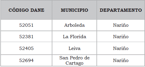 ARTÍCULO 1o. MERCADO RELEVANTE DE DISTRIBUCIÓN PARA EL SIGUIENTE PERÍODO TARIFARIO. Conforme a lo definido en el numeral 5.2 del artículo 5o de la Metodología contenida en la Resolución CREG 202 de 2013, en concordancia con las Resoluciones número 138 de 2014, 090 y 132 de 2018, y 011 de 2020, se aprueba el Mercado Relevante de Distribución para el siguiente período tarifario correspondiente a un Nuevo Mercado Relevante de Distribución conformado por los siguientes municipios: