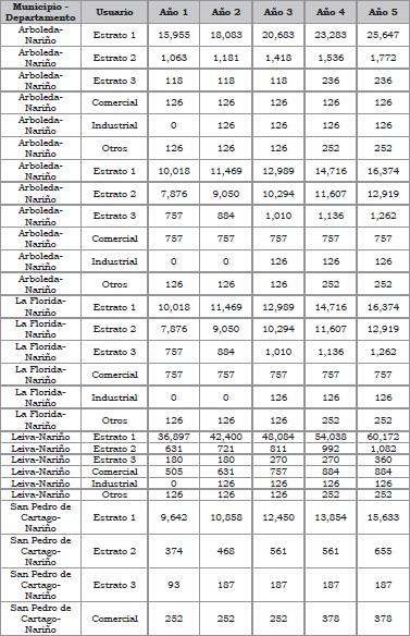 ARTÍCULO 8o. COMPONENTE FIJO DEL COSTO DE COMERCIALIZACIÓN APLICABLE AL MERCADO RELEVANTE CONFORMADO POR LOS MUNICIPIOS DE ARBOLEDA, LA FLORIDA, LEIVA Y SAN PEDRO DE CARTAGO EN EL DEPARTAMENTO DE NARIÑO. A partir de la vigencia de la presente resolución, el Componente Fijo del Costo de Comercialización aplicable para el mercado relevante de Comercialización para el siguiente período tarifario, para recuperar los costos de inversión y los gastos de AOM para la comercialización minorista de gas por redes de tubería, se fija de la siguiente manera: