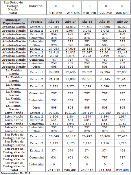 A través del aplicativo Apligas, dispuesto por le CREG para el correspondiente reporte de información de solicitudes tarifarias, la empresa SUPERGAS DE NARIÑO confirmó su solicitud bajo el número 2912.