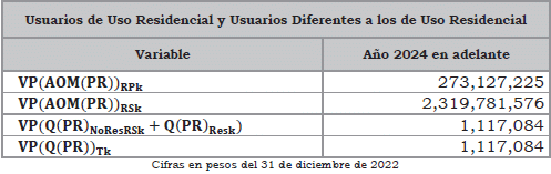 En aplicación de la Resolución CREG 202 de 2013, en concordancia con las Resoluciones CREG 138 de 2014, 090 y 132 de 2018 y 011 de 2020, se calcularon las siguientes variables principales para la componente que remunera los gastos de AOM, aplicable a usuarios de uso residencial y a usuarios diferentes a los de uso residencial: