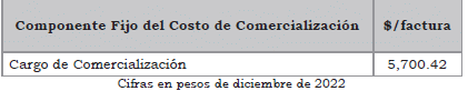 De acuerdo con la fórmula prevista en el artículo 6o de la Resolución CREG 102 003 de 2022, esta Comisión únicamente aprobará el Componente Fijo del Costo de Comercialización (Cf).
