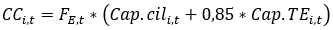 PARÁGRAFO 2. La capacidad total de envase en cilindros, de propiedad del distribuidor i, en el período t, se calculará de la siguiente forma.