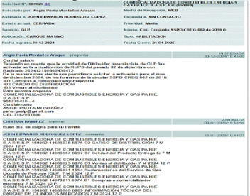 De otra parte, según lo manifestado por la SSPD en la comunicación de radicado CREG E2025004451, la recurrente: (i) en la fecha de corte de la información tenía habilitado el formato “1661 Información de tanques estacionarios” para el cuarto trimestre de 2024, (ii) de su parte no existían mesas de ayuda relacionadas con dificultades en su reporte, (iii) no incluyó la habilitación correspondiente de dicho formato y, (iv) presentó de forma extemporánea la información requerida.