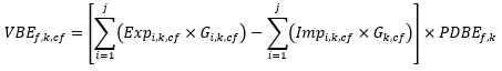 | : | Valoración del balance de excedentes de autogenerador, autogenerador remoto o AC en la frontera f, del mercado de comercialización k, para el ciclo de facturación cf, expresada en pesos, por ciclo de facturación, la cual se determinará mediante la siguiente expresión:![]() La valoración del balance se determinará teniendo en cuenta todas las fronteras reportadas por el Autogenerador remoto o AC, desde la 1 hasta la j, en el caso de la Autogeneración Colectiva y Autogeneración Remota. Teniendo en cuenta que la autogeneración se limita a una única frontera, para este caso la anterior fórmula se simplifica a la siguiente expresión: | |