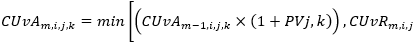 | Componente Variable del Costo Unitario de Prestación del Servicio Público de Gas Combustible por Redes de Tubería, expresado en $/m3, aplicado en el mes m, por el Comercializador j, en el Mercado Relevante de Comercialización i, para el tipo de usuario k. Para el primer mes de aplicación de la Opción, el valor de esta variable será igual al valor de la variable CUvR del mes anterior, CUvRm-1. | |
