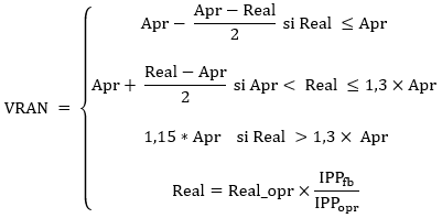 iii. Una vez construido el activo se realizará la comparación entre el valor de referencia determinado en el literal ii, con el valor real declarado por el agente en el Formato A09F3 de la presente resolución. La determinación del valor a reconocer en cargos se realizará mediante la comparación del valor real y del valor estimado, aplicando la banda de ajuste descrita mediante la siguiente ecuación: