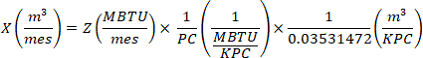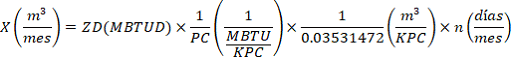 | 18 | Cantidades utilizadas (MBTU/mes, m3/mes). |