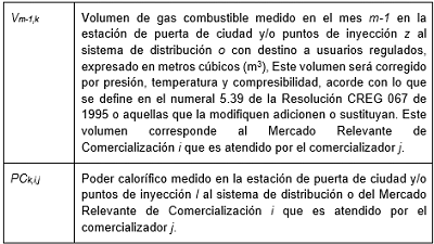 | 31 | Tramos de transporte que corresponden a la ruta utilizada desde el punto de entrega del gas hasta el punto de salida para la atención de la demanda regulada del Mercado Relevante de Comercialización. |