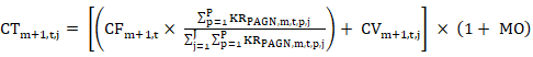 | Valor a facturar al beneficiario j, en el mes m+1, en el sistema de transporte t, por el servicio prestado por confiabilidad en el mes m, por el proyecto PAGN. | |
