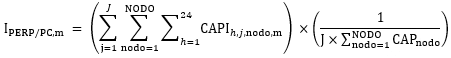 | Capacidad indisponible máxima del nodo del proyecto PERP/PC en la hora h durante el día j del mes m. Expresada kilo-barriles diarios. | |