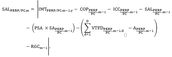 | Saldo de ingresos obtenidos en el mes m, por la prestación del servicio del proyecto PERP/PC en el mes m-1. Valor expresado en pesos colombianos. | |