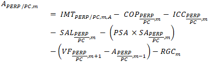 | Saldo de ingresos en el mes m, por el proyecto PERP/PC, en pesos colombianos. | |